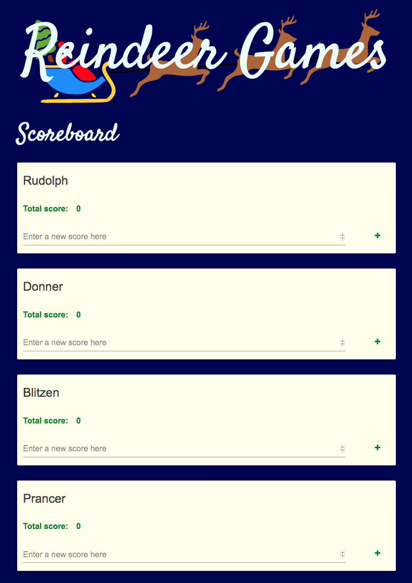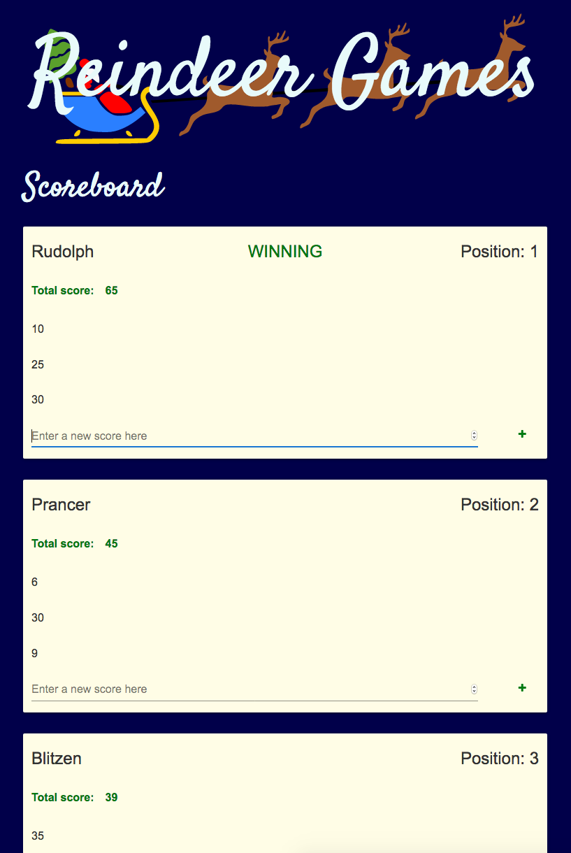 Once you’ve entered some scores, they appear on the scorecards and the scorecards are ranked based on who is in what position: