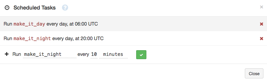 So if you have a fish tank, the least1 you can do is provide them with a daily light cycle. Luckily for them2, it’s possible to connect your fish tank to the internet and create a Scheduled Task to change the light level during the day.