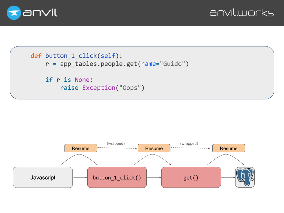 Here’s some code you might write in Python. Go get a record from the database, and if it’s not there, throw an error.