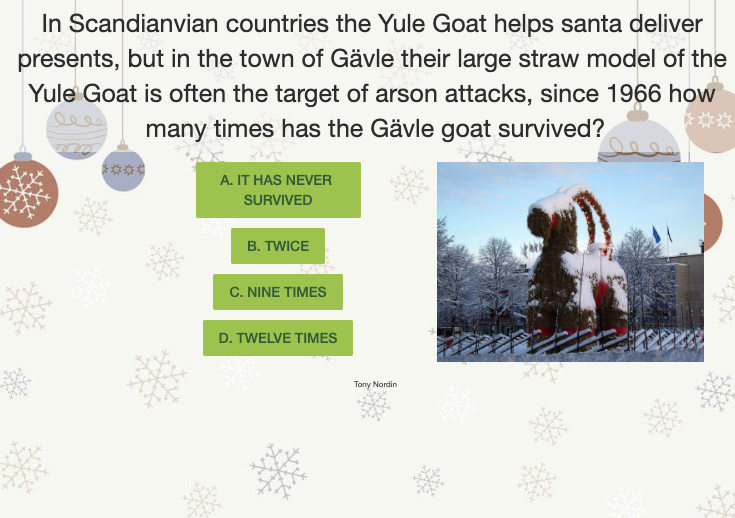 Last year, we found ourselves doing a lot of online Christmas Pub Quizzes. Hopefully, this year will have a lot more in person gatherings, but it’s still fun to have a remote quiz when you are far away from friends and family! So we made a Christmas quiz in Anvil: