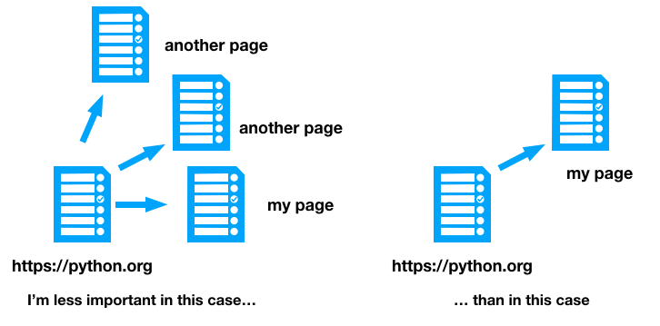The algorithm is based on the idea that important pages will get linked to more. Some terminology: if python.org links to my page, then my page has a ‘backlink’ from python.org. The number of ‘backlinks’ that a page has gives some indication of its importance.