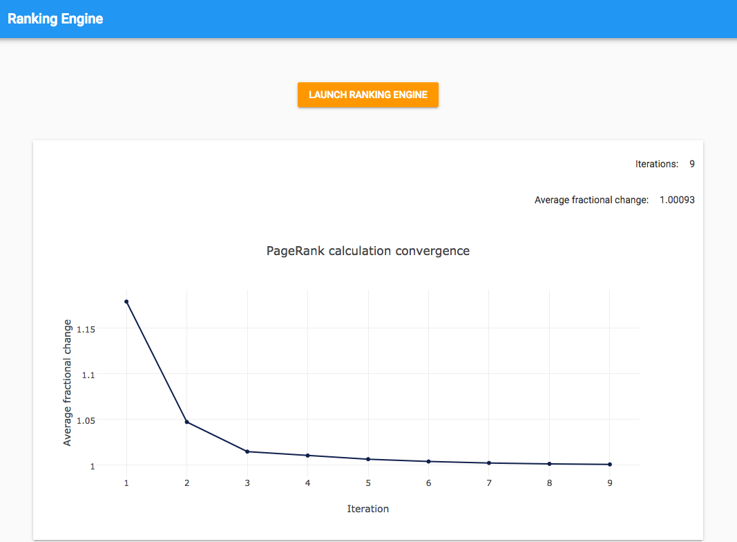 Now for the PageRank calculation itself. I expect the calculated values of the PageRanks to converge on the correct solution. So I want to invent a metric to tell if the calculation has stopped changing much. I’ll calculate how much the average page has changed in rank, and if that’s small, my calculation has converged.