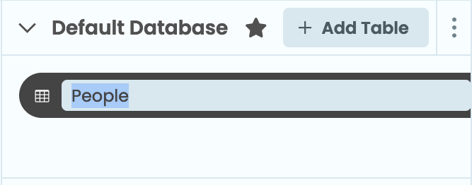 To add a data table to your app’s Default database, open the database window