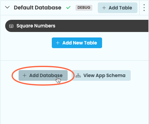 To change which database your app uses when it runs in the Editor, click on the three dots next to the + Add Table button of your desired database.