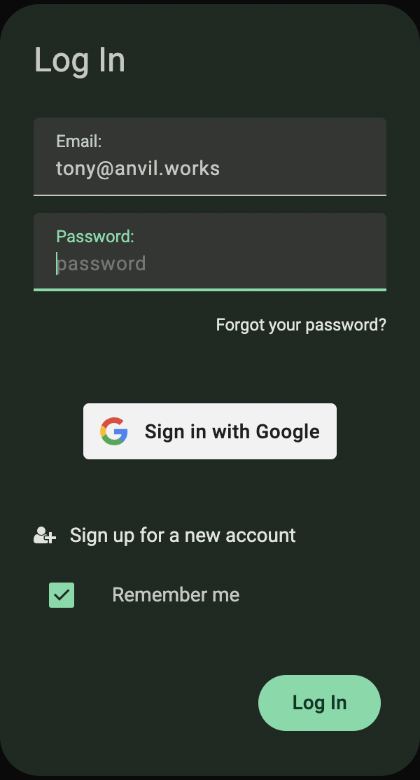 Anvil has a built-in Users Service, which handles signup, login and user permissions, as well as supporting corporate single-sign-on, two-factor authentication, and more. I simply added the Users Service to my app and chose the authentication methods I wanted to use - Email + Password and Google sign-in. I then added anvil.users.login_with_form() to my client side to display a login form on startup.