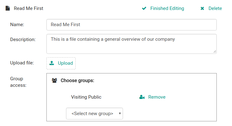 There is also a special “Public” group, to which all users automatically belong. This can be used to distribute non-critical documents (eg press packs).