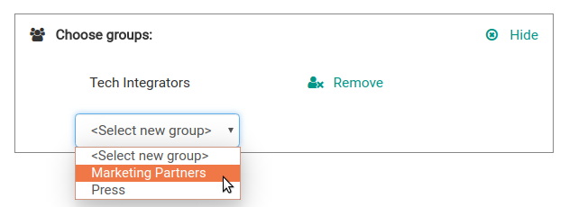 A DropDown is used to add new groups. It contains an option for every group that is not yet in the list - selecting that option adds the corresponding group to the list.