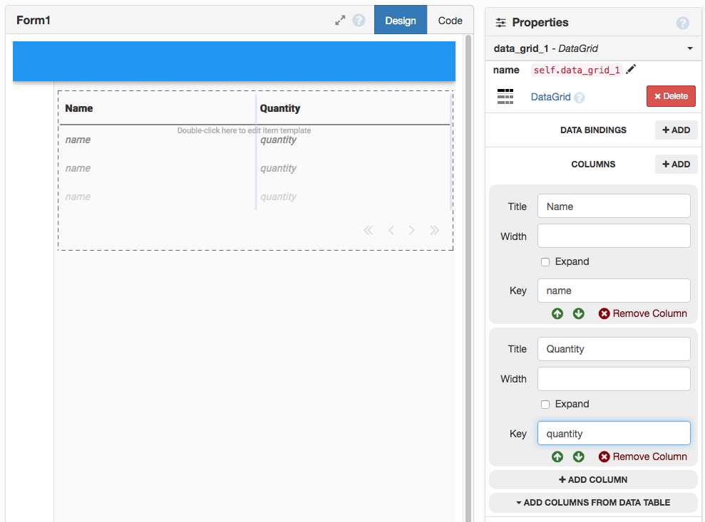 Step 2: Add a Data Grid to your app