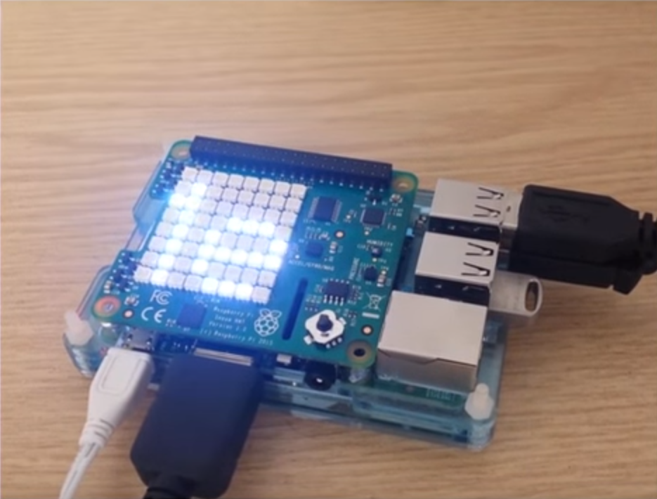 pip install anvil-uplinkAnd in a Python script on the Raspberry Pi, write we some code to print a message. The message is printed on a SenseHAT, which has an LED display that can be controlled from a simple Python library.