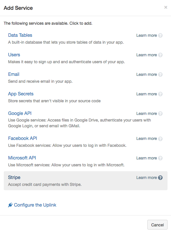 We enable the Stripe Service: