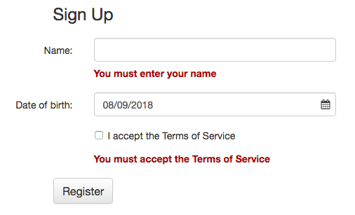 # Not shown: a bit of code at the end for checking the form as a whole.require_text_field and require_checked are convenience functions that wrap the require method.
